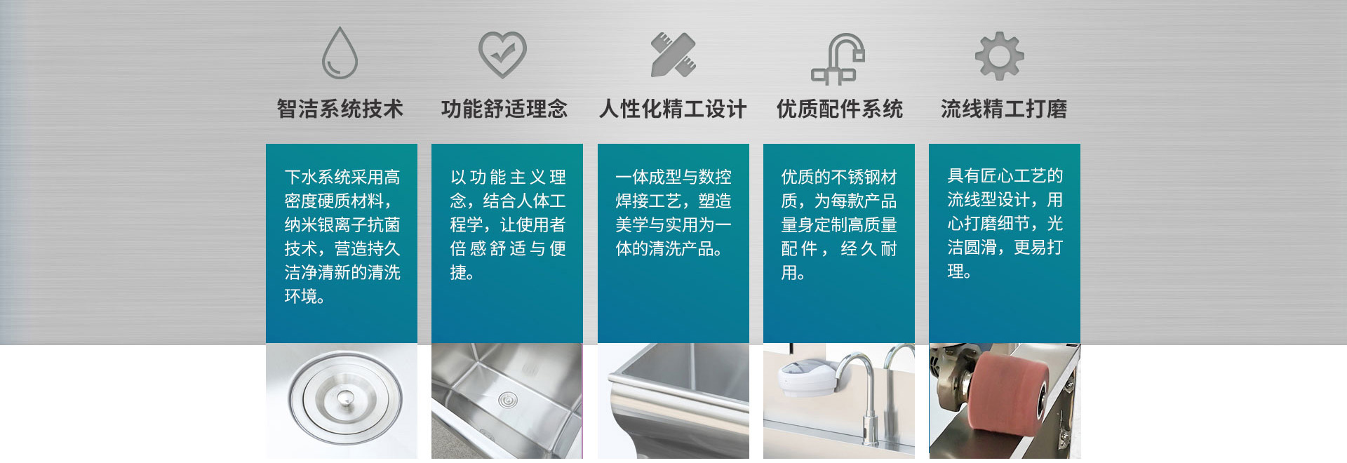 公司主要產品有:醫用級SUS304不銹鋼洗手池、器械清洗槽、工作臺、不銹鋼柜子、不銹鋼水槽、不銹鋼墻架以及其他客戶定制金屬產品。
